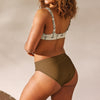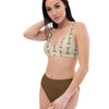 It’s easy to fall in love with this Arrow High Waist Bikini set!! The high waist bottoms are so flattering with a cheeky fit in back and the supportive top has removable pads and a double-layer front to make it comfy to wear all day. UPF 50 (blocks both UVA and UVB rays). Solid brown bottoms with small arrow logo on back.
