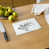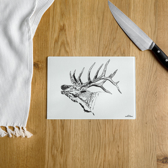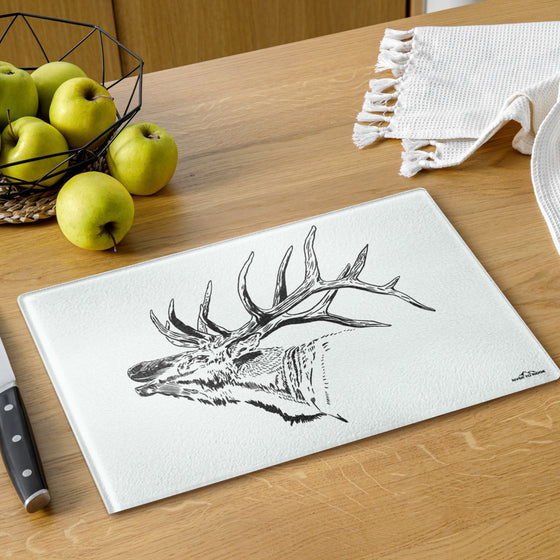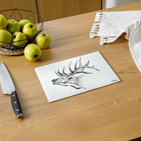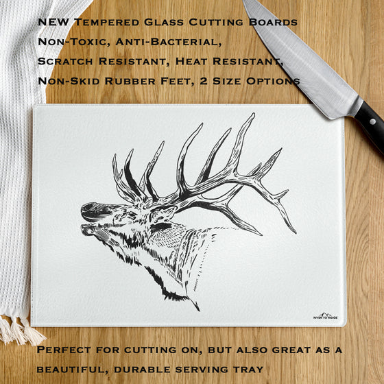 Show off your outdoor lifestyle with our beautiful Tempered Glass Non Toxic Elk Cutting Boards. They are perfect for for slicing, dicing, or serving on! Glass does not retain harmful bacteria, and unlike plastic cutting boards that get tiny grooves in them from your knives that harbor bacteria; the glass surface is durable, scratch resistant and easy to clean!