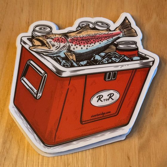 NEW  5 inch by 4.8 inch, high quality sticker featuring our original Fishing Cooler Logo