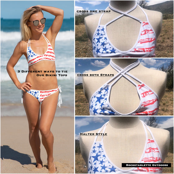 REVERSIBLE Bikini, FREE Shipping, SALE 10% OFF, Gun Flag Patriotic