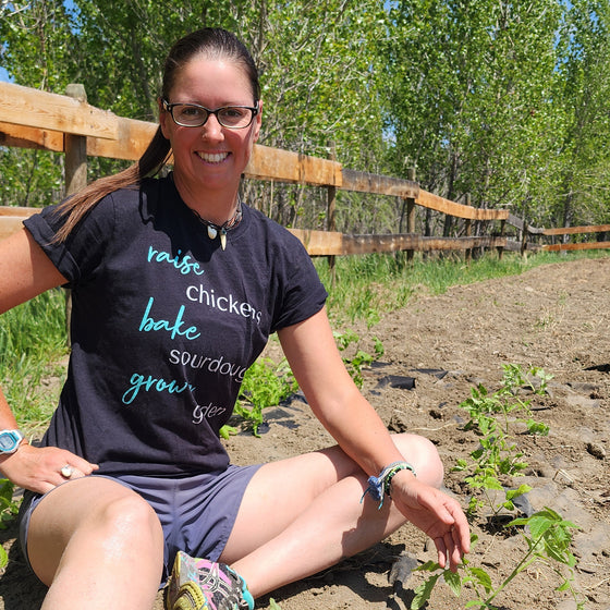 Ultra soft and lightweight, our Homestead T Shirt says; "Raise Chickens, Bake Sourdough, Grow a Garden". Available in super soft heather black or blue. Relaxed fit, pre-shrunk, no need to size up!