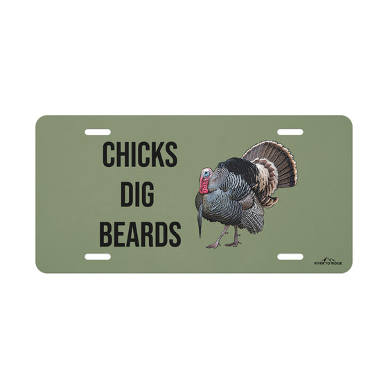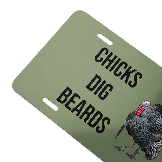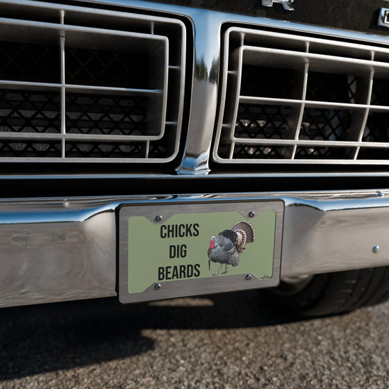 Chicks Dig Beards, Turkey Hunting Front License Plate, Olive