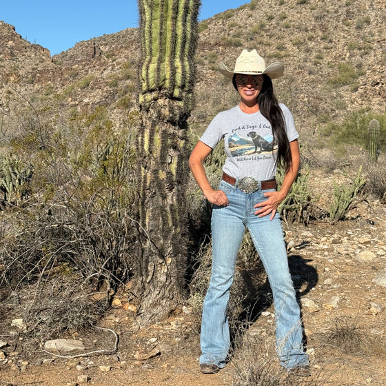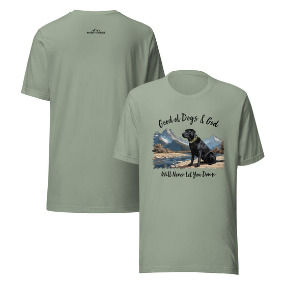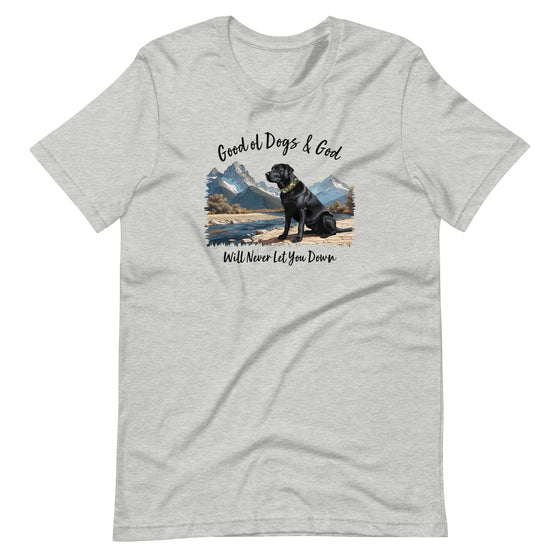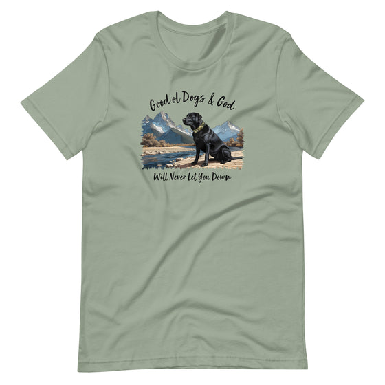Good ol Dogs and God, Will Never Let You Down! These Women's relaxed fit Black Lab T's will remind you of adventures with your best friend! Ultra soft, 100% combed Pre-shrunk cotton. Sage or Heather Grey